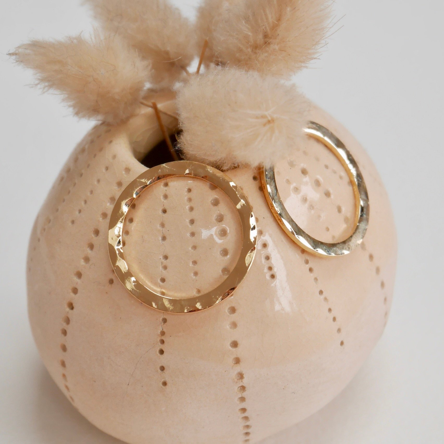 Les bijoux en laiton dorés à l'or sont martelés, façonnés un à un à la main, chaque bijou est donc unique, votre bijou pourra être légèrement différent de celui photographié.