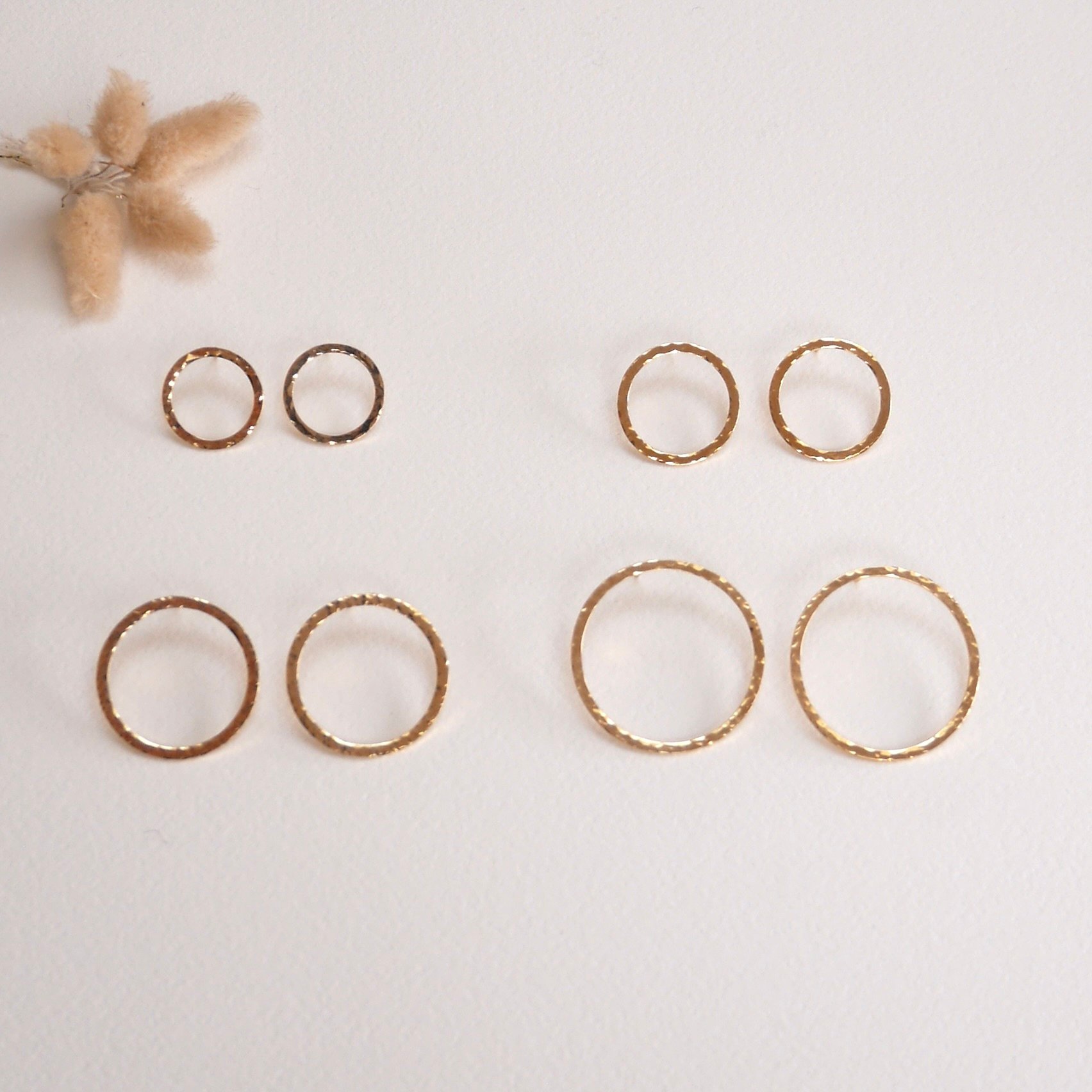 Les bijoux en laiton dorés à l'or sont martelés, façonnés un à un à la main, chaque bijou est donc unique, votre bijou pourra être légèrement différent de celui photographié.