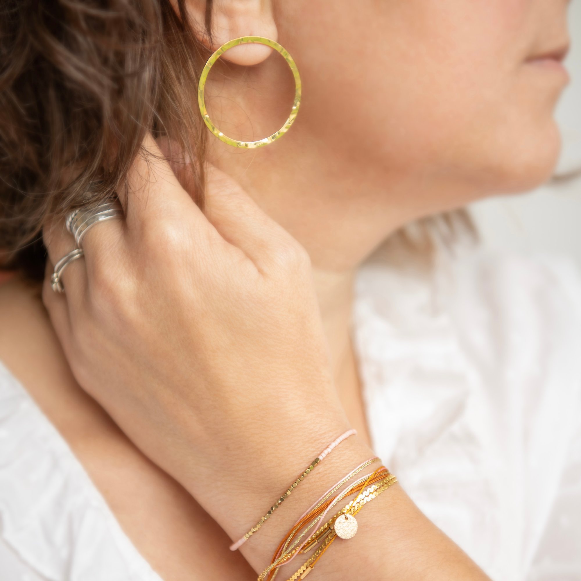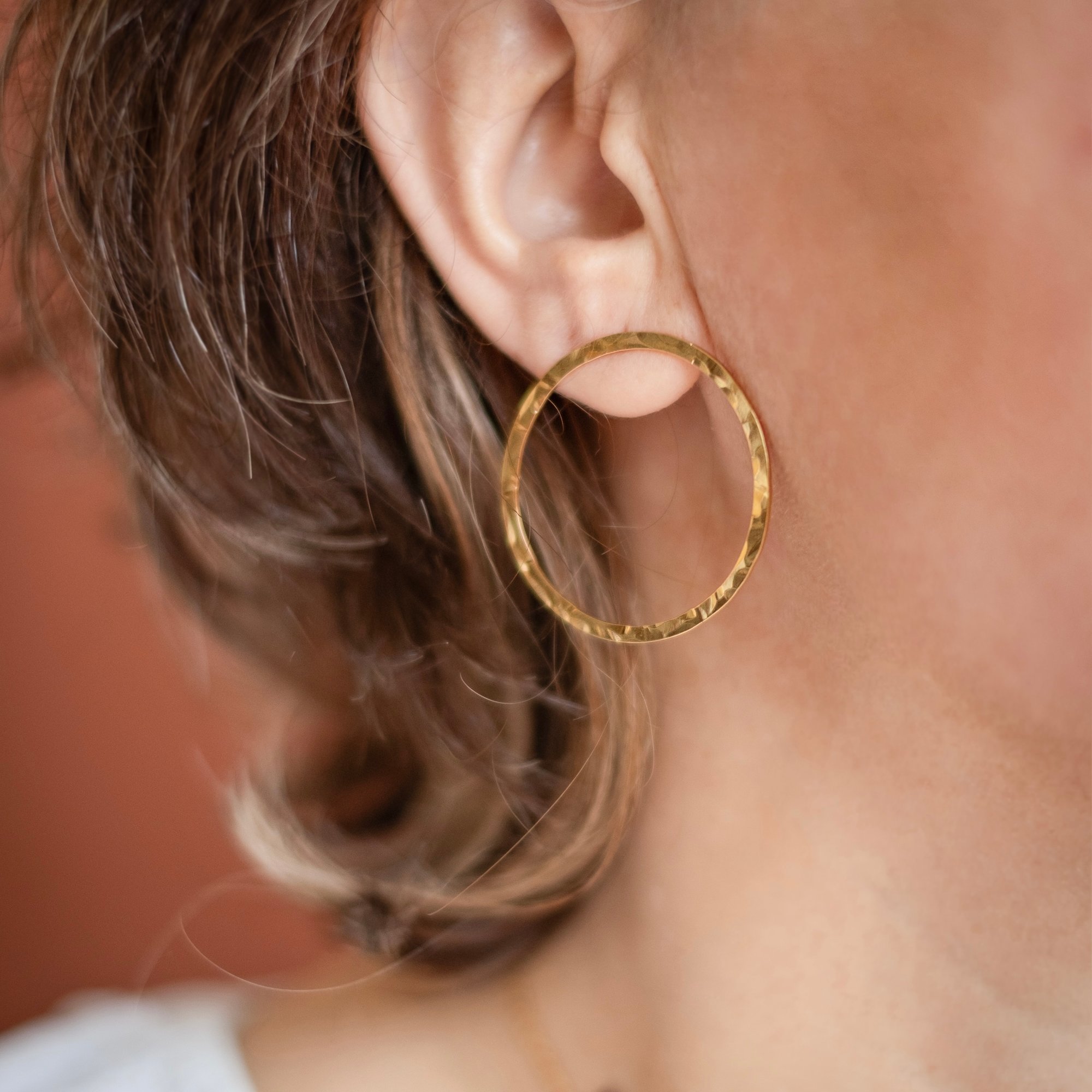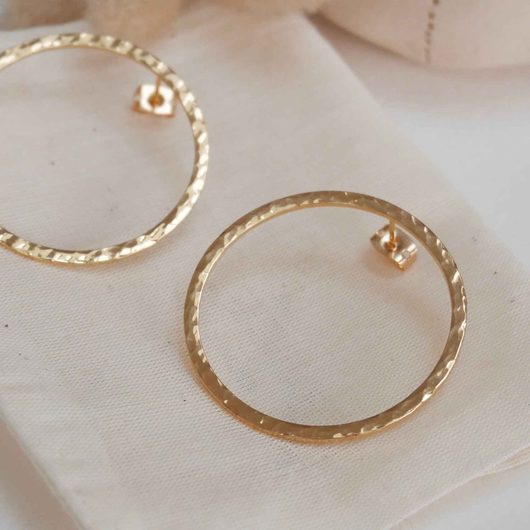 Boucles créoles martelées, dorées à l'or fin (1 micron)
