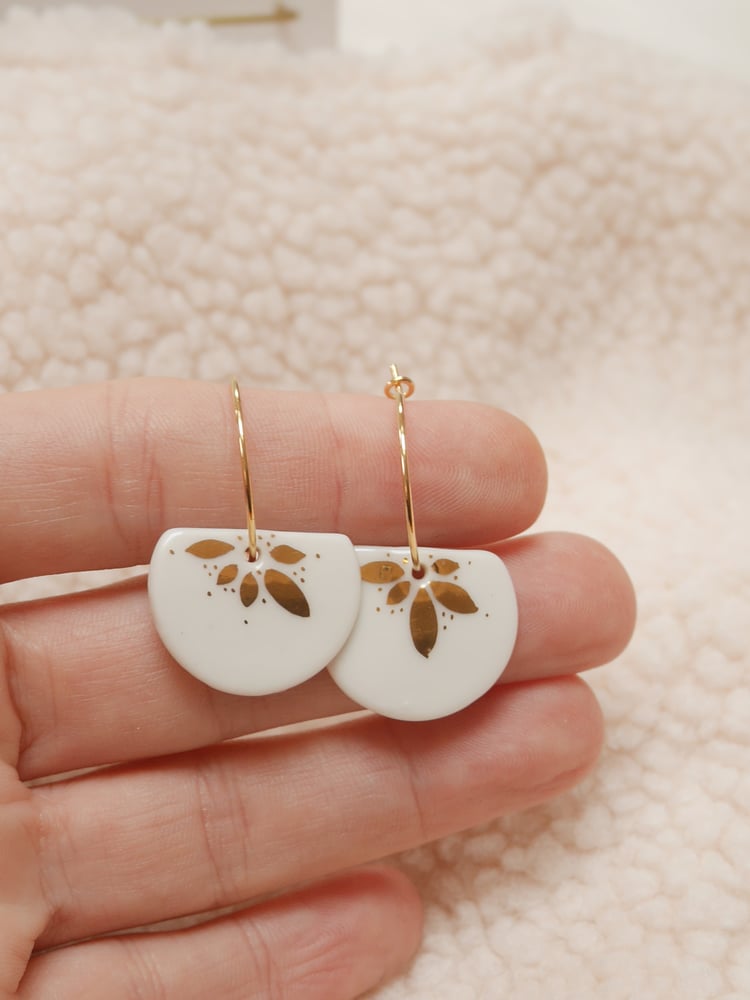 Les boucles Inès sont l'association de la porcelaine et de l'or.
